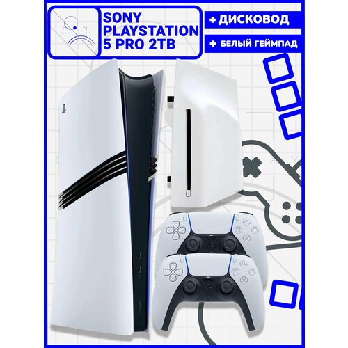 Sony PlayStation 5 Pro Digital Edition 2ТБ + Дисковод + Второй белый геймпад, Переходник РФ в подарок
