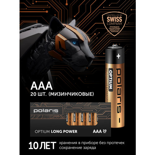Батарейки щелочные (мизинчиковые) Polaris PB ААA (20шт) OPTIUM 1.5 В, 1200 mAh