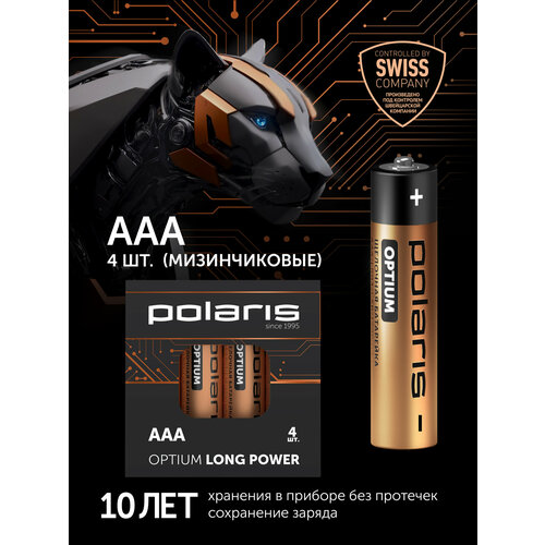 Батарейки щелочные (мизинчиковые) Polaris PB ААA (4шт) OPTIUM 1.5 В, 1200 mAh