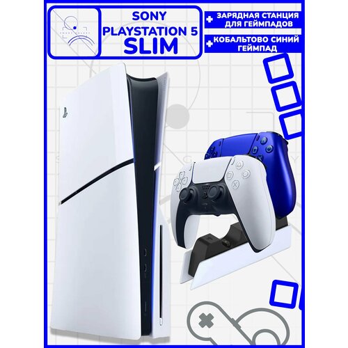 Игровая приставка Sony PlayStation 5 Slim с дисководом + 2й кобальтово синий геймпад и зарядная станция