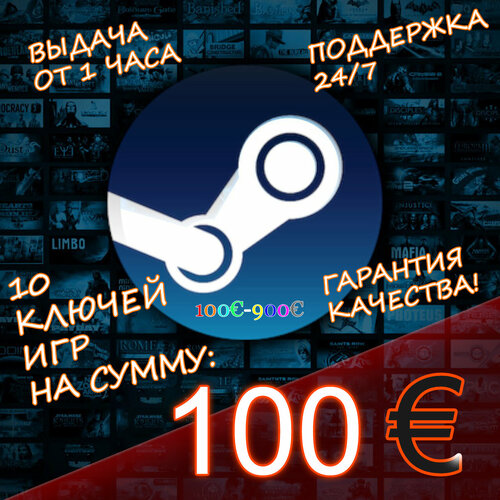 Steam 10 Ключей ПК Игр на сумму от 100 евро / РФ+весь МИР(Global) / Стим 100 EURO Game Key PC