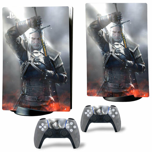 Наклейка виниловая защитная на игровую консоль Sony PlayStation 5 Fat Disc Edition, Геральд, полный комплект с геймпадами