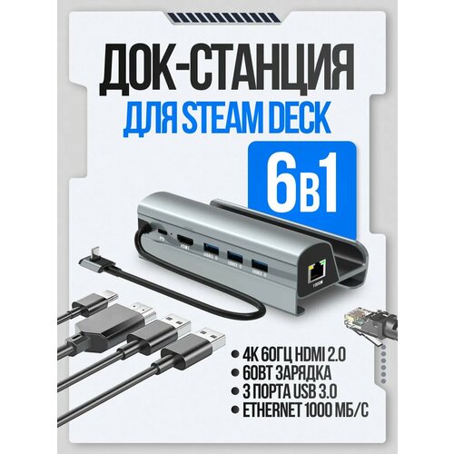 Док станция подставка для Steam Deck зарядное устройство 6 в 1 серая