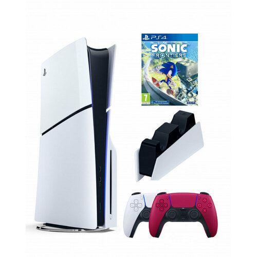 Приставка Sony Playstation 5 slim 1 Tb+2-ой геймпад(красный)+зарядное+Sonic