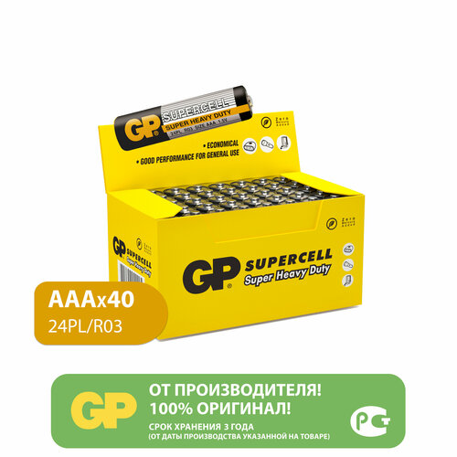 Батарейки ААА мизинчиковые солевые GP 24PLEBRA, 1.5 В, набор 40 шт.