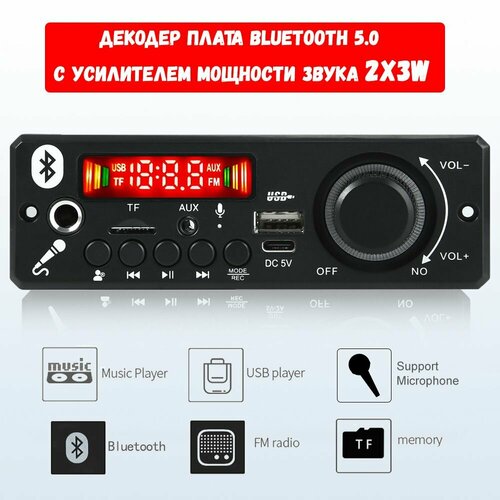 Усилитель мощности звука с Bluetooth 2X3W / Декодер, плата Bluetooth, AUX, USB, TF, FM 3,7-5V В для автомобиля и домашних стерео систем / JX-Y20