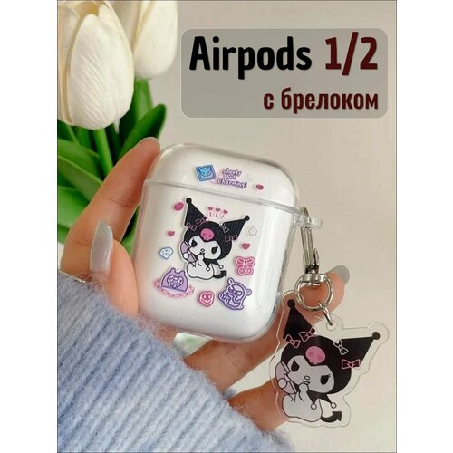 Чехол для наушников AirPods 1 / 2 ( на Аирподс ) силиконовый с принтом "Куроми" и брелком, прозрачный