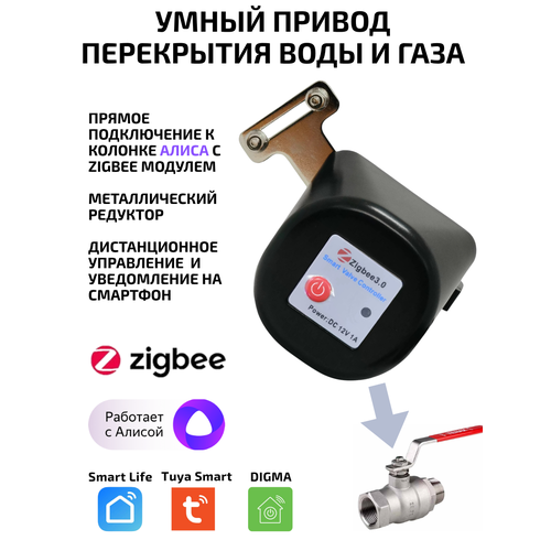 Умный привод перекрытия воды и газа Tuya ZigBee, для шарового крана с Алисой