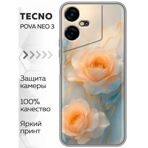 Чехол для Tecno Pova Neo 3 с принтом женский с цветами (Техно Пова Нео 3)