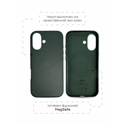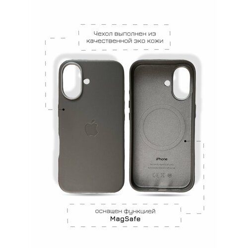 Чехол для iPhone 16, с поддержкой беспроводной зарядки, Soft touch, кожаный
