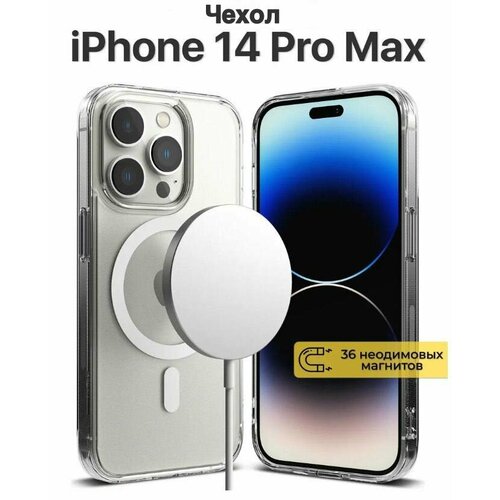 Прозрачный чехол MagSafe на iPhone 14 Pro Max/Силиконовый чехол для Айфон 14 Pro Max/Усиленный с защитой камеры и экрана