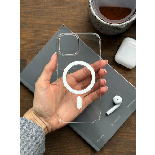 Чехол на Айфон 14 ( iPhone 14 ) magsafe, прозрачный, силиконовый, c защитой камеры, с магнитом, противоударный