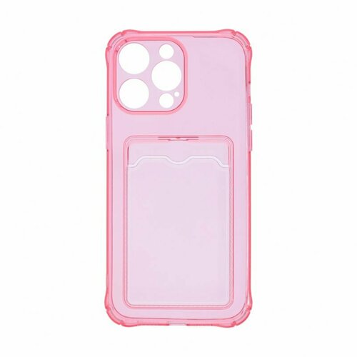 Силиконовый чехол противоударный для Apple iPhone 14 Pro Max (с картхолдером) светло-розовый