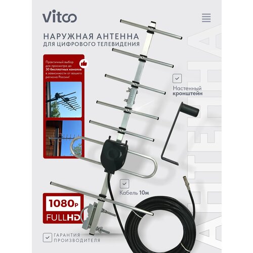 Антенна телевизионная уличная VT1189 с кабелем и кронштейном