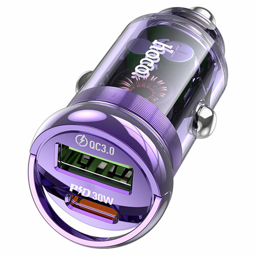 Автомобильное зарядное устройство, 1 USB 18W+1 PD 30W (Z53A), HOCO, с прозрачным