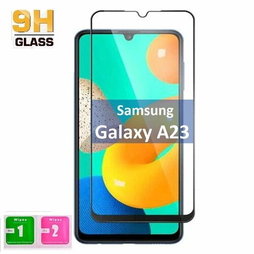 Комплект 3 шт. Защитное стекло для Samsung Galaxy A23, черная рамка.
