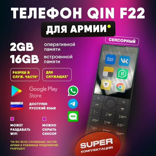 Кнопочный телефон для армии и закрытых предприятий Qin F22, без камеры, сенсорный, интернет, Андроид.