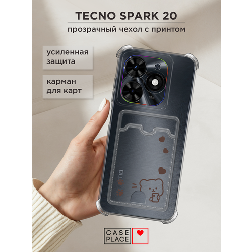 Чехол на Tecno Spark 20/Infinix HOT 40i (Текно Спарк 20/Инфиникс Хот 40i) с картой и принтом Мишка и сердечки