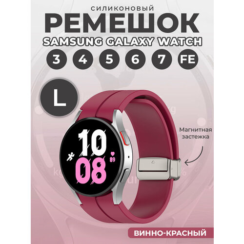 Силиконовый ремешок для Samsung Galaxy Watch 4/5/6, L, серебристая застежка, винно-красный