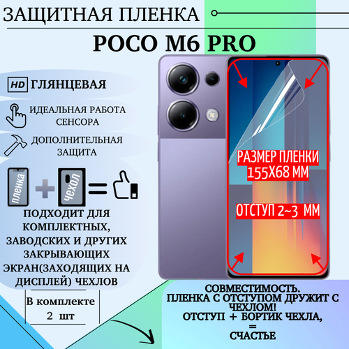 Гидрогелевая плёнка для Poco M6 pro, глянцевая под чехол 2 шт