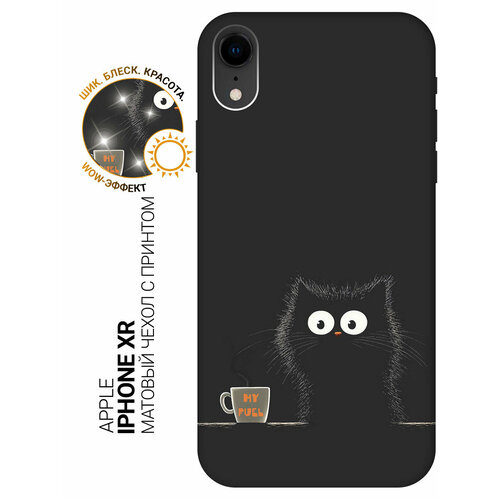 Силиконовый чехол на Apple iPhone XR с принтом "Котик и кофе" матовый черный