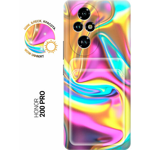Силиконовый чехол на Honor 200 pro с принтом "Ультрафиолетовая абстракция" с карманом для карты прозрачный