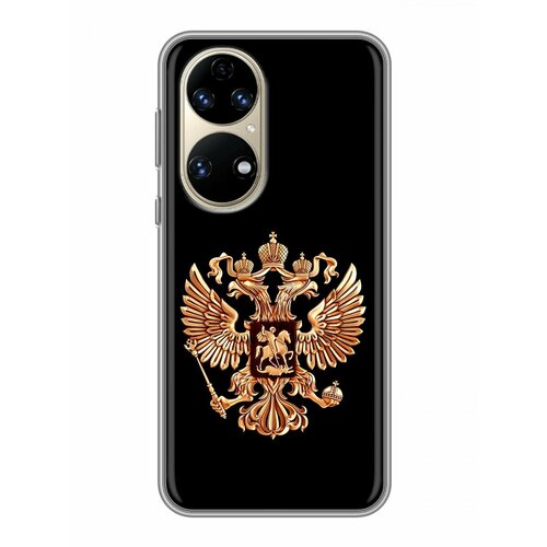Чехол для Huawei P50 Pro с принтом Герб России золотой (Хуавей Р50 Про)