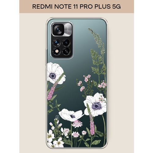 Силиконовый чехол "Цветы рисунок" на Xiaomi Redmi Note 11 Pro Plus 5G / Сяоми Редми Нот 11 Про Плюс 5G, прозрачный