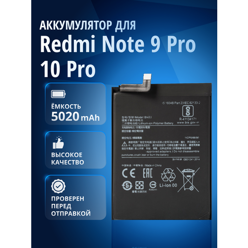 Аккумулятор BN53 для Xiaomi Redmi Note 9 Pro, Redmi Note 9 Pro Max, Redmi Note 10 Pro, Redmi Note 10 Pro Max, Poco M2 Pro
