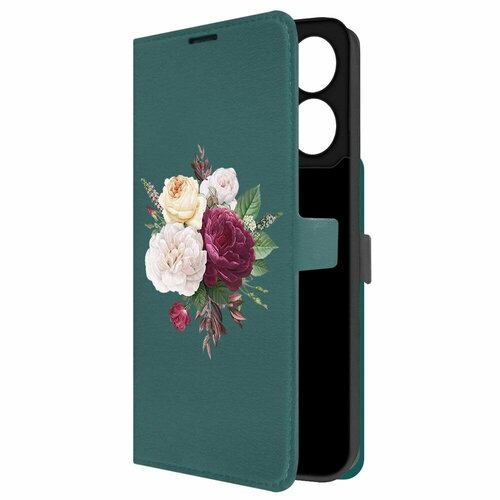 Чехол-книжка Krutoff Eco Book для Xiaomi Redmi 13C Цветочная композиция (зелёный опал)