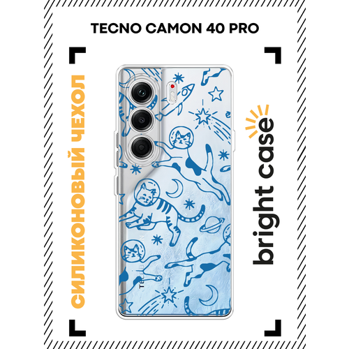 Чехол на Tecno Camon 40 Pro/40 Pro 5G / Текно Камон 40 Про/40 Про 5G с принтом Котики космонавты, прозрачный