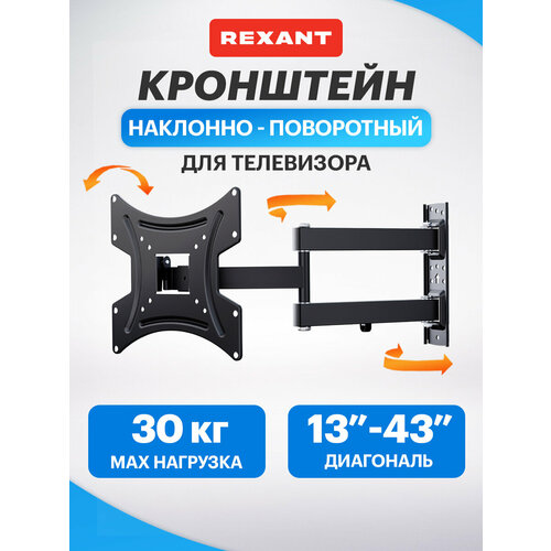 Кронштейн для телевизора настенный поворотный 23-43 дюйма Rexant, наклонный, крепления на стену в комплекте