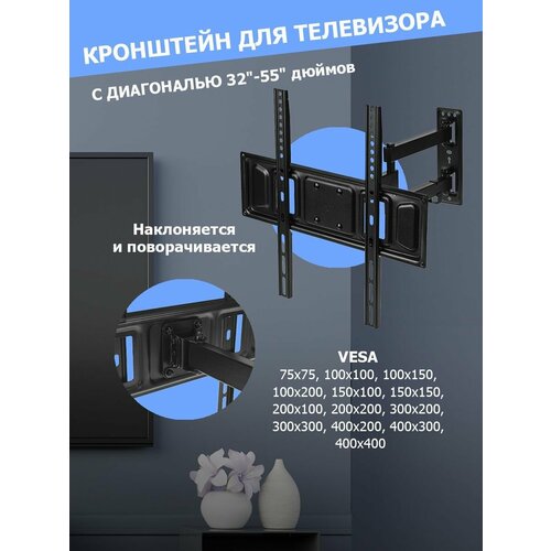 Кронштейн для телевизора Rexant 17"- 55", наклонно-поворотный два колена Для телевизора 17-55,наклонно-поворотный(38-0080)