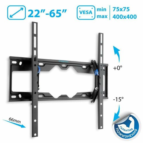Kromax Кронштейн Kromax IDEAL-6, для ТВ, наклонный, 15-47", 20 мм от стены, черный