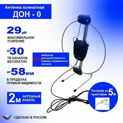 Антенна для цифрового тв комнатная МИР-АНТЕНН-Дон-0-P с усилителем (ПС), для ТВ 360 градусов + кабель