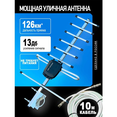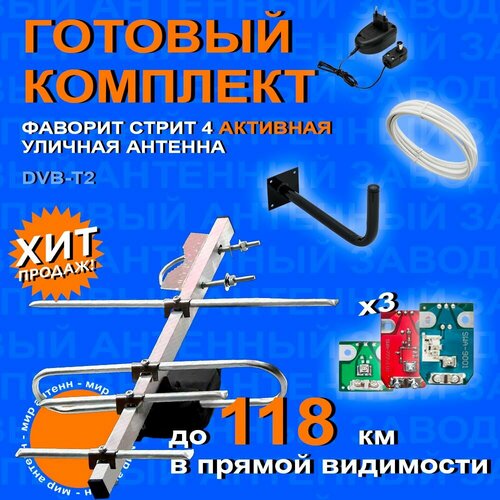 "Комплект для цифрового ТВ: Уличная антенна Фаворит Стрит 4 с кабелем, с усилителем 9001 777, блоком питания и кронштейном" / антена для телевизора