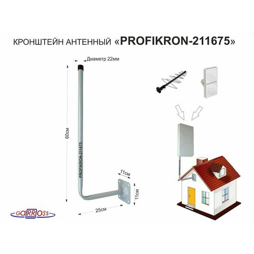 Кронштейн антенный, вылет 0,25м "PROFIKRON-211675", вверх 0,6м, диам. 22мм, основание 11х11см
