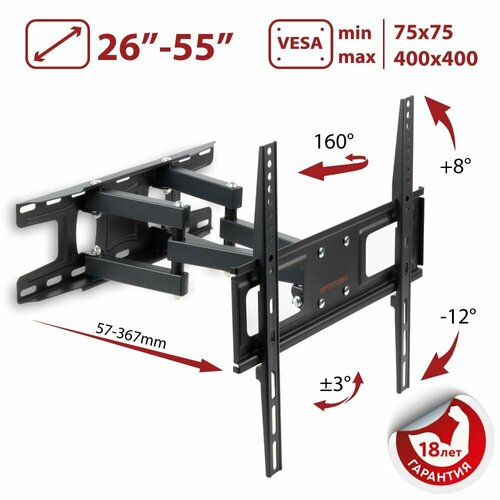 черныйARM MEDIA PARAMOUNT-60 надёжно удержит экран размером 32"-75" дюйма и весом 60 кг. Простая конструкция ARM MEDIA PARAMOUNT-60 идеально подойдет для самостоятельного монтажа. Наклонно-поворотная регулировка позволит наклонять вверх и вниз на 3 -10°, поворачивать влево и вправо на 180°, и выдвигать на 69-615 мм. Кронштейн подходит для большинства телевизоров диагональю 32, 37, 38, 39, 40, 42, 43, 47, 48, 49, 50, 55, 58, 60, 65, 70, 75 дюймов популярных брендов, . Крепёжные отверстия ARM MEDIA PARAMOUNT-60 изготовлены по стандарту VESA. В комплектацию ARM MEDIA PARAMOUNT-60 входят необходимые для монтажа материалы. Вся продукция обеспечивается гарантийными обязательствами. 18 лет гарантии на все сварные и механические соединения позволит наслаждаться конструкцией долгий срок. Во время эксплуатации ARM MEDIA PARAMOUNT-60 демонстрирует поразительную износостойкость и безотказность.