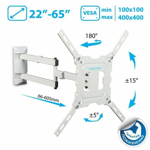 Кронштейн на стену ONKRON M8L для телевизора 42"-110", наклонно-поворотный, до 100 кг, вращение на 90°