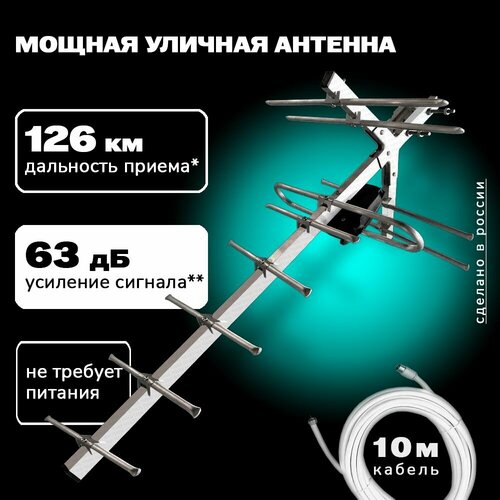 Пассивная антенна для телевизора МИР 12 с кабелем 10 м. уличная цифровая