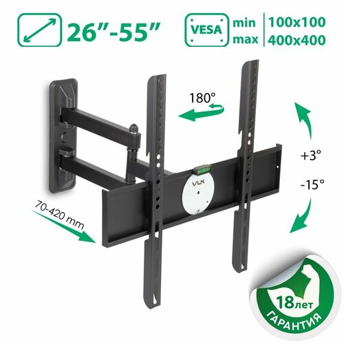 Кронштейн для телевизора на стену / крепление наклонно-поворотное VLK TRENTO-24 / до 55 дюймов / vesa 400x400