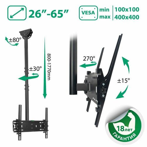 Цены на Кронштейн VLK TRENTO-36, для ТВ, наклонный, 15-48", 28 мм от стены черный в г. Екатеринбург