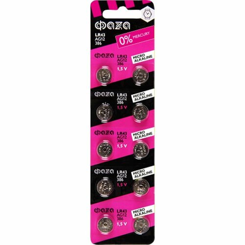 Марганцево-цинковые часовые элементы питания ФАZА AG12 LR 43 BL-10 5002791