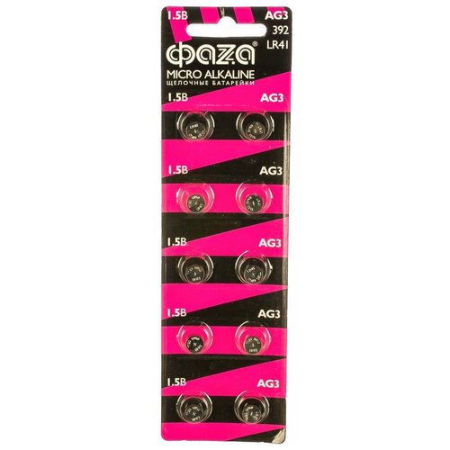 Элемент питания алкалиновый "таблетка" LR41/AG3 BL-10 (уп.10шт) ФАZА 5002524