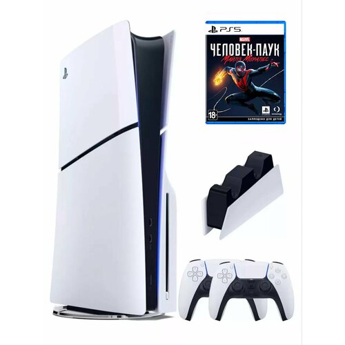 PS5 (ПС5) Игровая приставка Sony PlayStation 5 Slim disk+2-й геймпад+зарядное+ Человек-паук: Маилз-Моралес , 1000 ГБ
