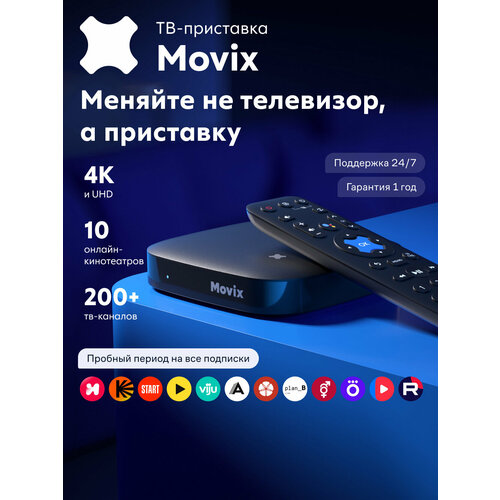 ТВ-приставка Movix от Дом. ру, 4K Ultra HD, Android 11, пульт ДУ