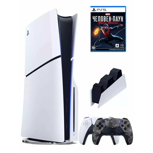 PS5 (ПС5) Игровая приставка Sony PlayStation 5 Slim disk+2-й геймпад(камуфляжный)+зарядное+ Человек-паук: Маилз-Моралес , 1000 ГБ