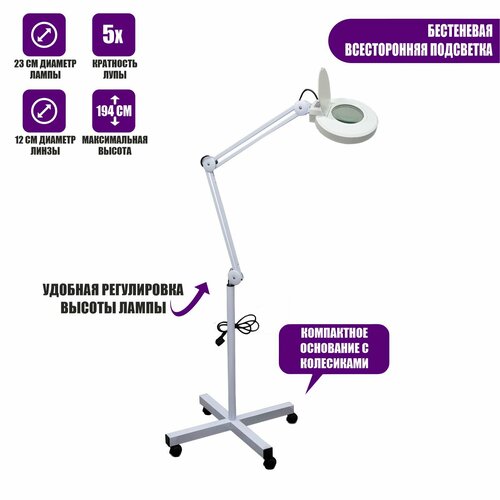 Напольная лампа лупа LCD-1 косметологическая светодиодная на колесах с гибким держателем-прищепка для телефона