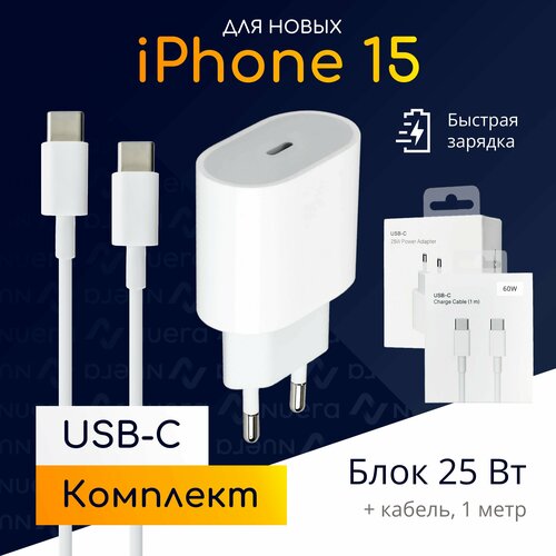 Комплект быстрой зарядки USB-C для iPhone 15: блок 25W + кабель, 1 метр / Original Drop