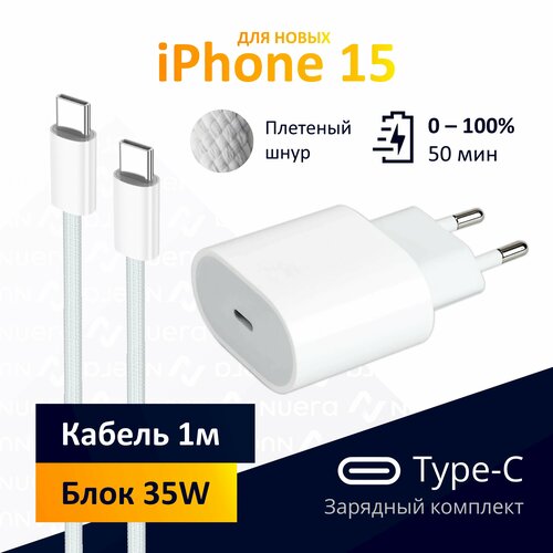 Быстрая зарядка Type-C для iPhone 15: блок 35W + плетеный кабель, 1м / комплект / Original drop